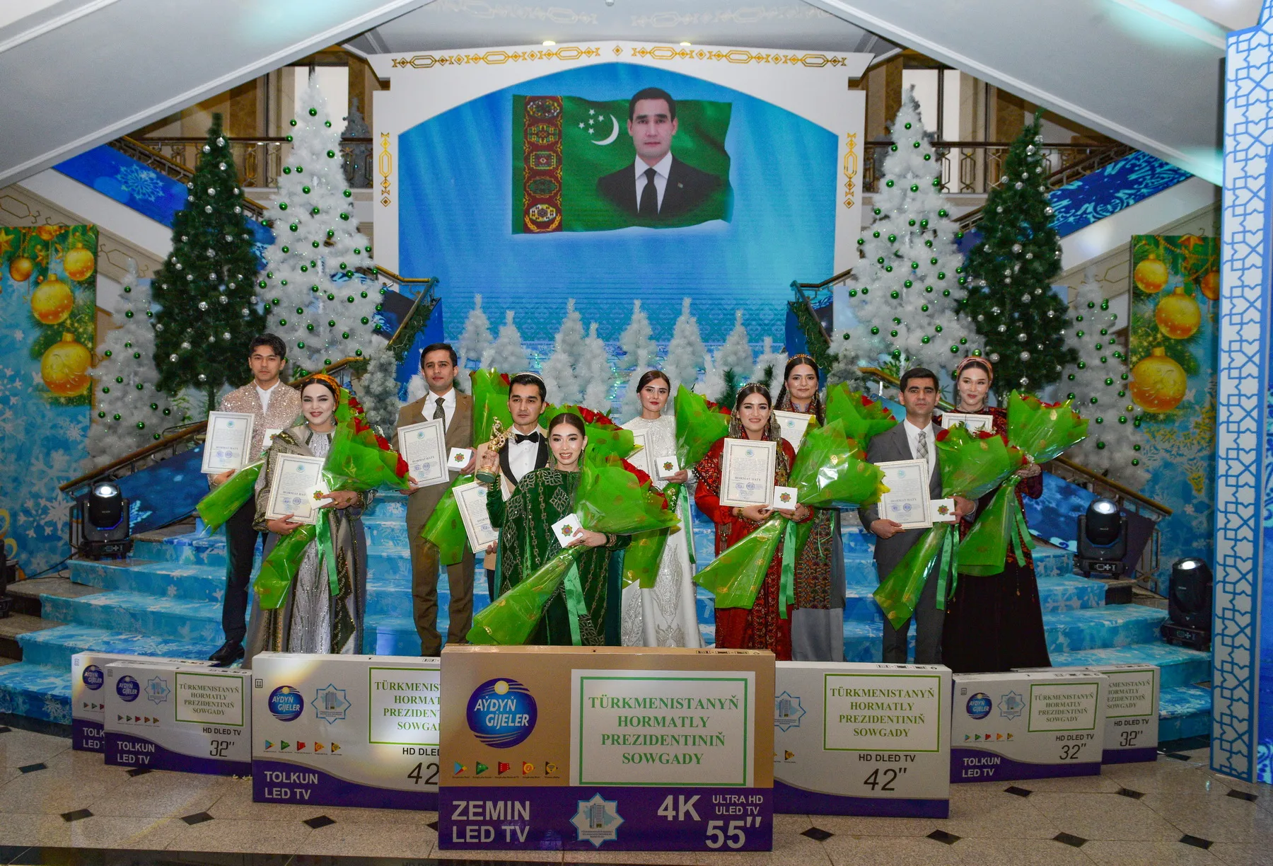Президент Туркменистана наградил десять молодых исполнителей памятным серебряным знаком